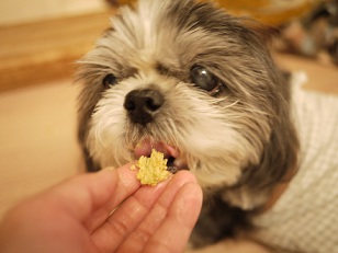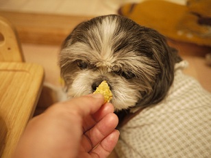 かなり渋々な顔してるけど、一応、食べてはくれました^^;