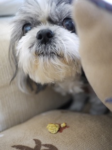 ワタシが食べようと思って、残り物を焼き直してたら ちょーだい。って。