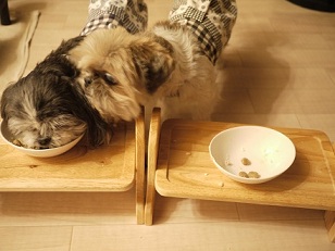 カリカリフードは、しじみの茹で汁で、軟らかくしてあげて